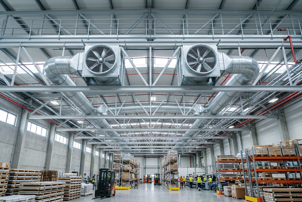 「窓を開けて換気扇を回せば十分」と思われがちですが、倉庫のような大空間では、換気は想像以上に難しい課題です。